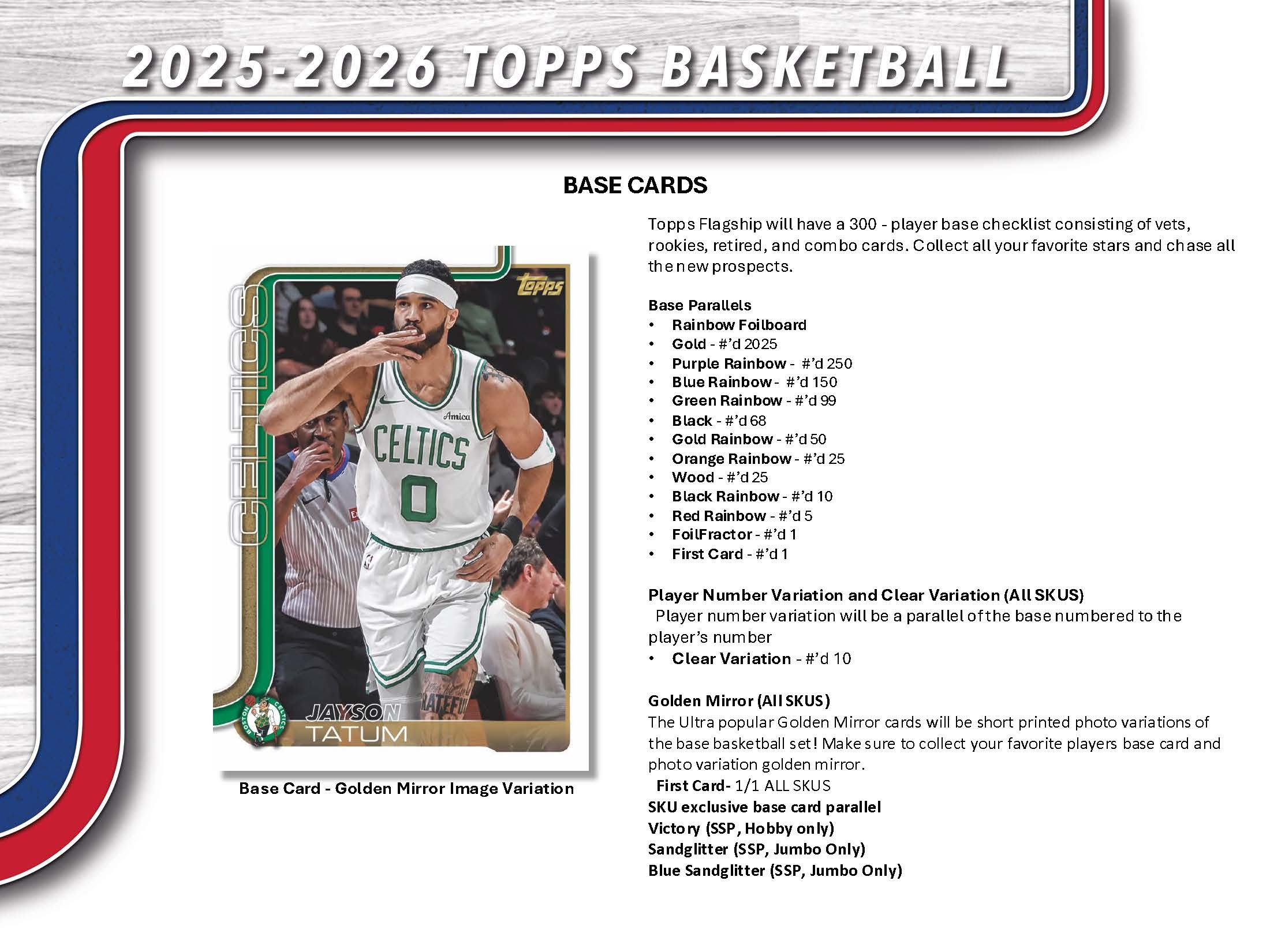 Get ready to rip into a slam - dunk set packed with the hottest Rookies, superstar Vets, and legendary Retired NBA icons. The 2025 Topps Flagship Basketball set delivers fresh, clean designs that capture the pulse - pounding energy of today’s game — all while honoring the iconic look and feel of past Flagship releases.