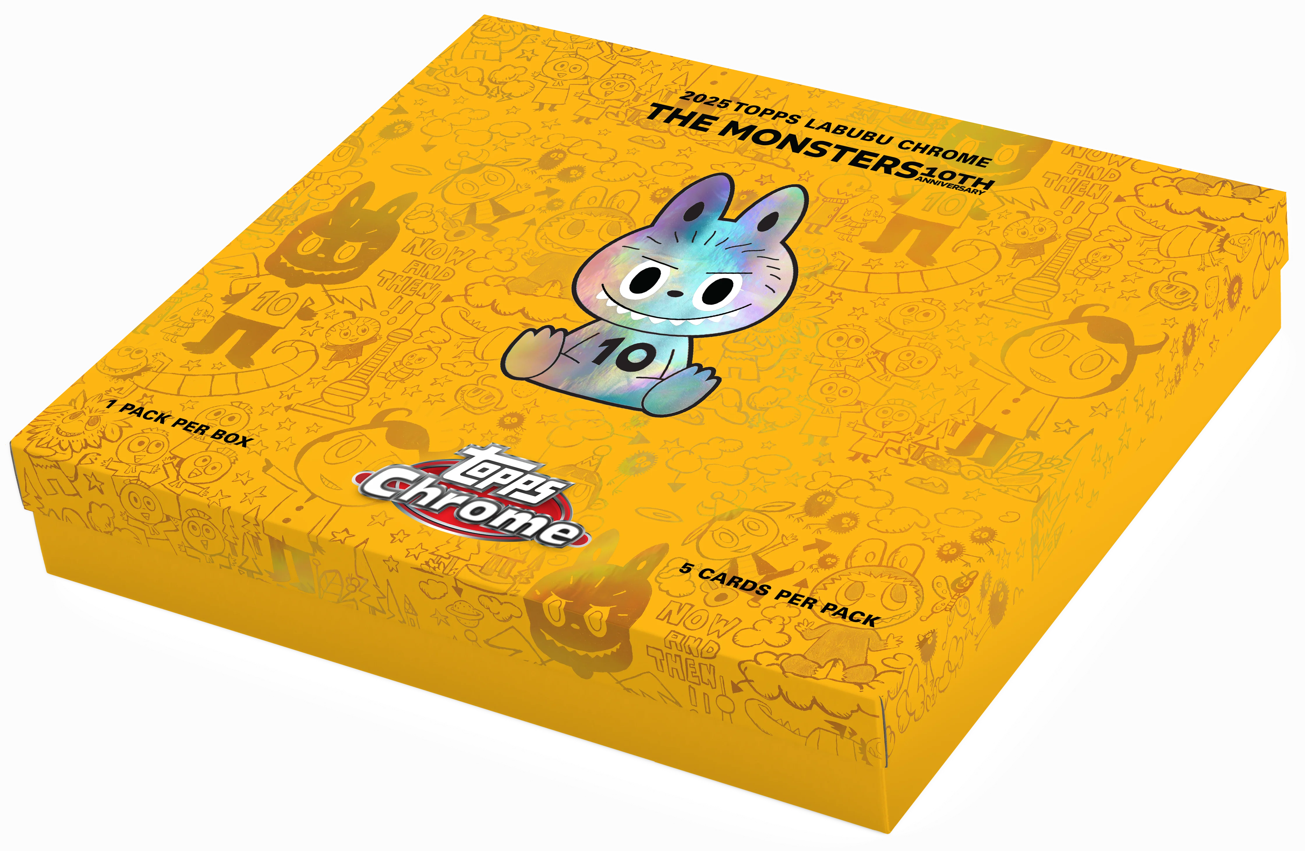 Each 2025 Topps Chrome® Labubu 10th Anniversary box includes four (4) Chrome® base cards and one (1) Chrome® parallel.