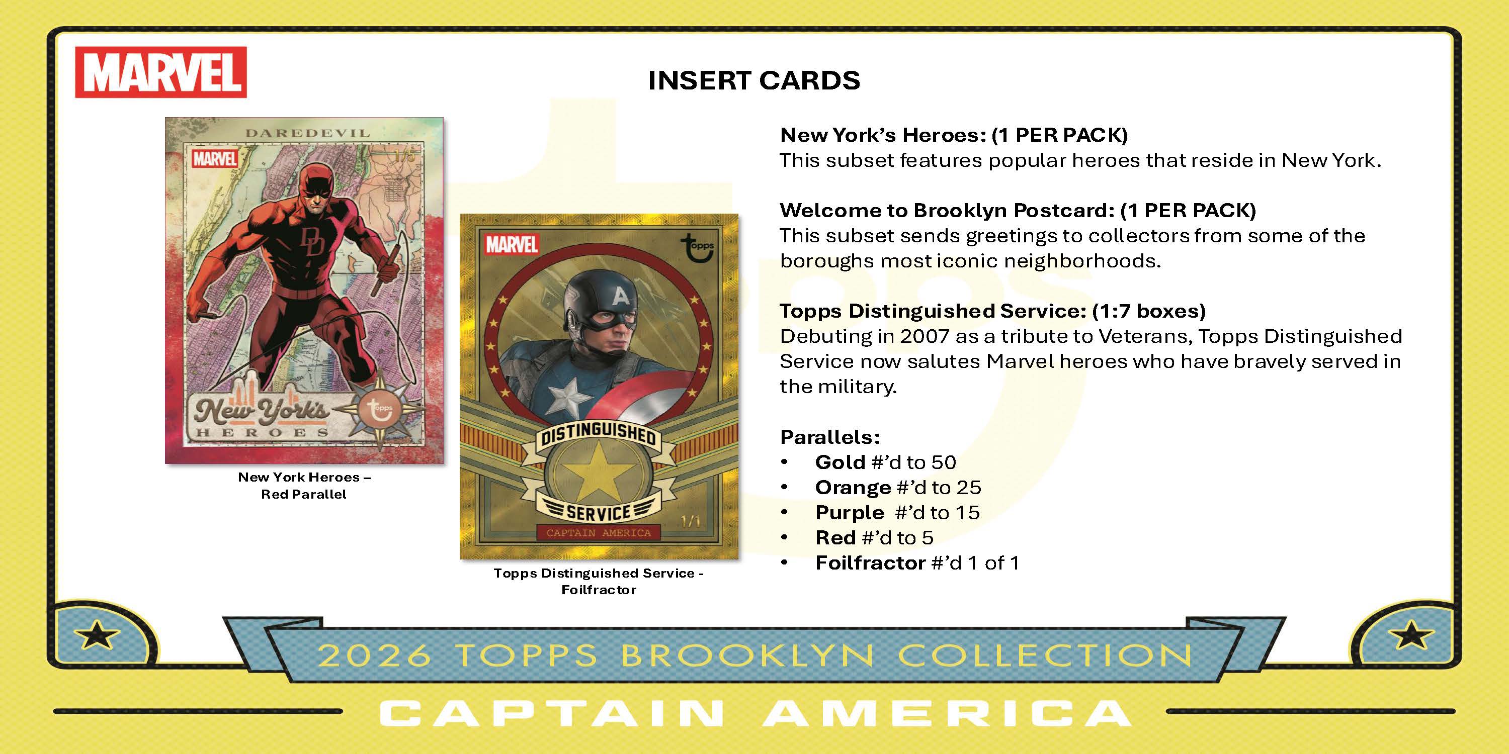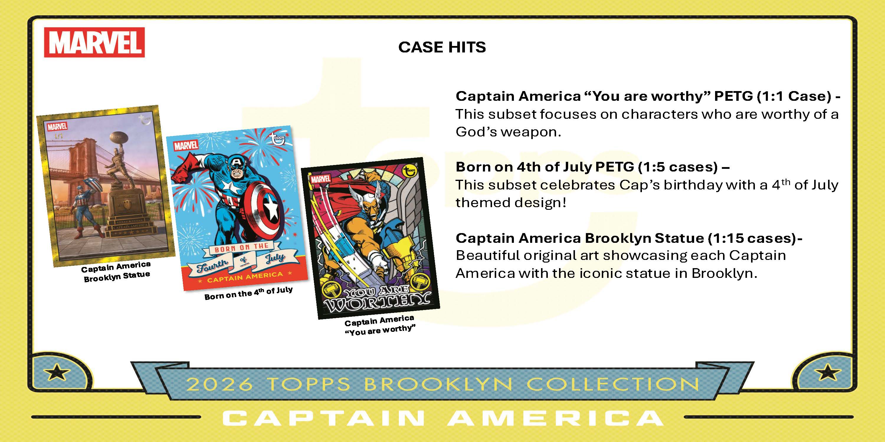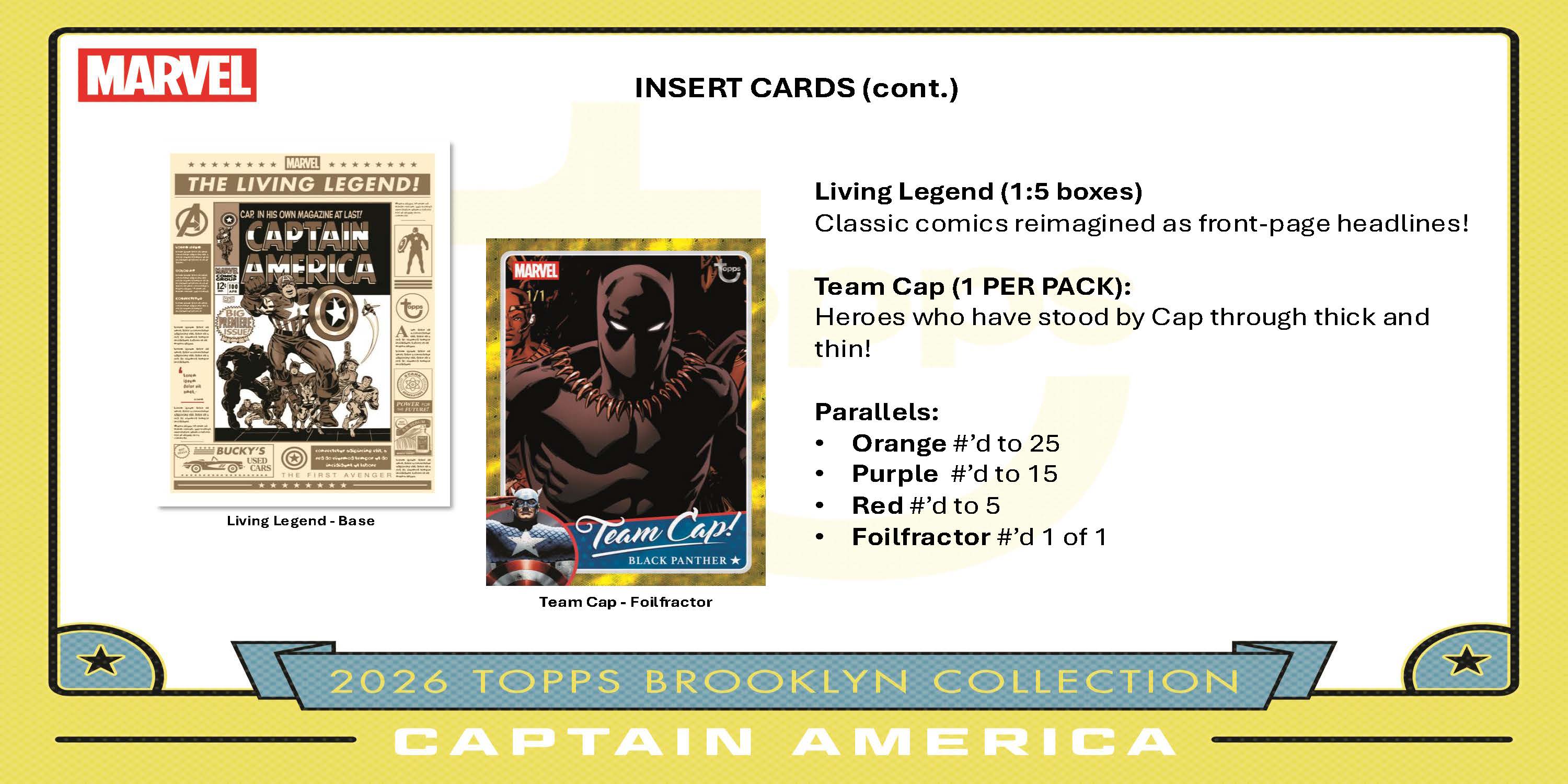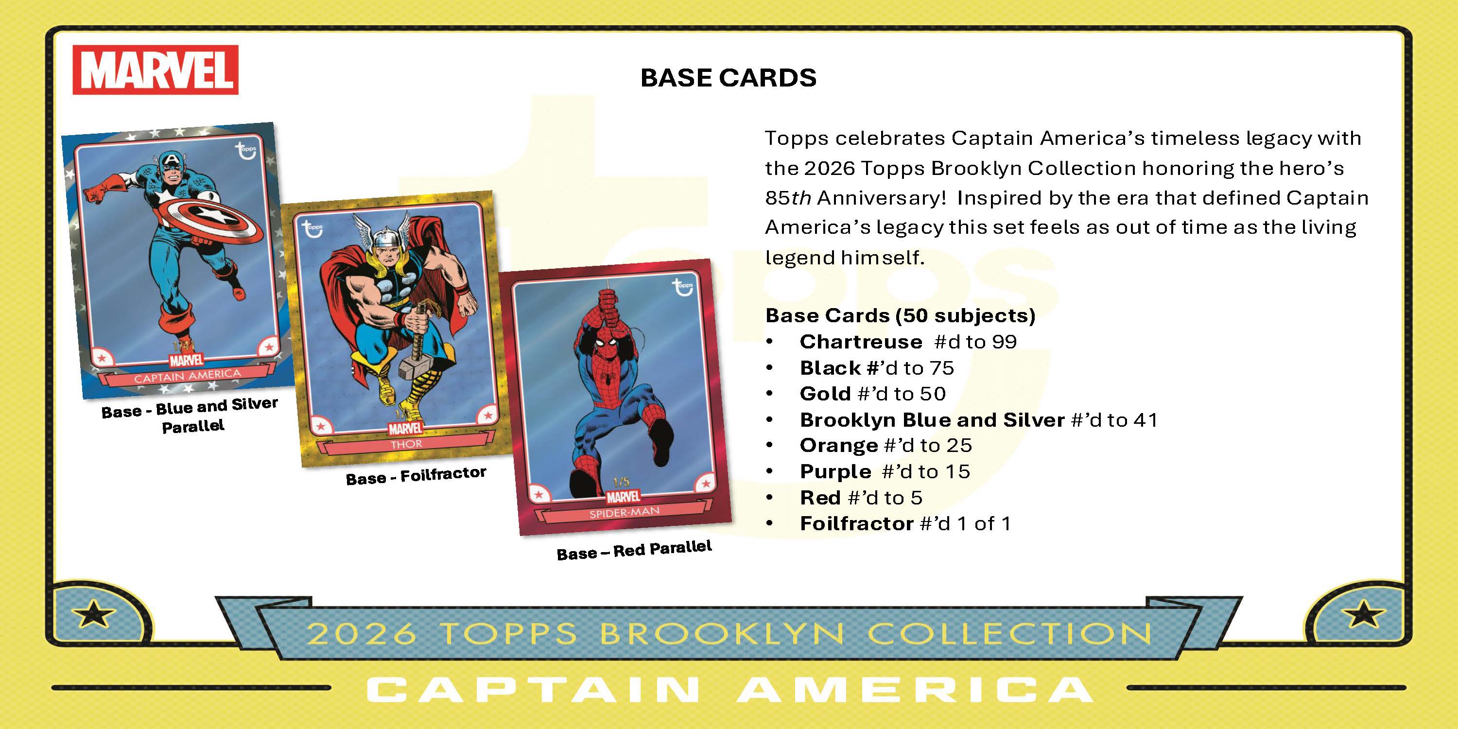 Topps celebrates Captain America’s timeless legacy with the 2026 Topps Brooklyn Collection honoring the hero’s 85th Anniversary! Inspired by the era that defined Captain America’s legacy this set feels as out of time as the living legend himself.